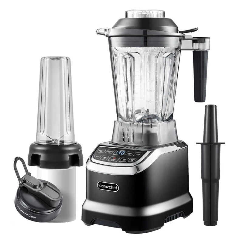 Blender kielichowy AMZCHEF ZM5003-BK oferuje imponującą moc sięgającą 1800 W i pojemność na poziomie 1,85 l, a jego ostrza pracują z prędkością do 26 000 RPM. Dzięki temu z łatwością przygotujesz różnorodne potrawy i napoje – od smoothie i koktajli, przez zupy kremowe. Z powodzeniem zmielisz także ziarna czy mięso. Dodatkowy bidon o pojemności 600 ml pozwoli Ci delektować się pysznymi napojami także poza domem.