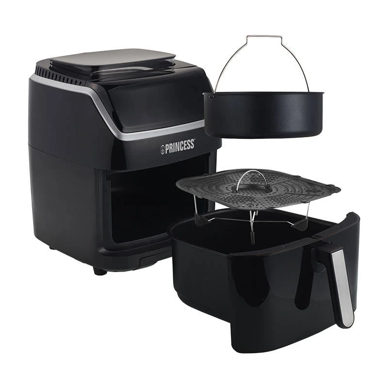 Frytkownica beztłuszczowa marki Princess wykorzystuje cyrkulację gorącego powietrza, dzięki czemu w prosty i szybki sposób przygotujesz zdrowe posiłki, które zachwycą nawet najbardziej wymagających członków rodziny. Urządzenie wyróżnia się mocą 1700 W i obsługuje aż 8 trybów pracy, w tym funkcje smażenia, pieczenia i pary, co daje możliwość przygotowania różnorodnych potraw, takich jak frytki, kurczak, ryby, warzywa, a także desery. Obudź swoją kreatywność, mieszaj składniki i zaskakuj innych swoimi potrawami!