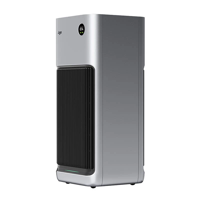 Jya Fjord Pro to inteligentny oczyszczacz ewaporacyjny o wysokiej wydajności, który dostarcza 550m³ powietrza na godzinę, co pozwala oczyścić powietrze w pomieszczeniu o powierzchni 409 m² - 710 m². Z użyciem filtra HEPA H13 i warstwy węgla aktywnego skutecznie usuwa z powietrza sierść zwierząt, pyłki, zapachy, opary chemii gospodarczej, kurz i wirusy dbając o zdrowie osób w pomieszczeniu. Nie wymaga przy tym dużo troski — filtr wystarczy wymieniać co 3 miesiące. Urządzenie posiada czujniki jakości monitorujące cząsteczki PM2.5, PM10, TVOC (całkowite lotne związki organiczne), a także temperaturę i wilgotność w domu, co pozwoli użytkownikowi poznać ważne informacje na temat jego otoczenia. Fjord Pro jest kompatybilny z Amazon Alexa, Google Assistant i Apple HomeKit pozwalając na zdalne sterowanie. Dzięki eleganckiej, srebrnej obudowie z powodzeniem sprawdza się także jako dekoracja domu.