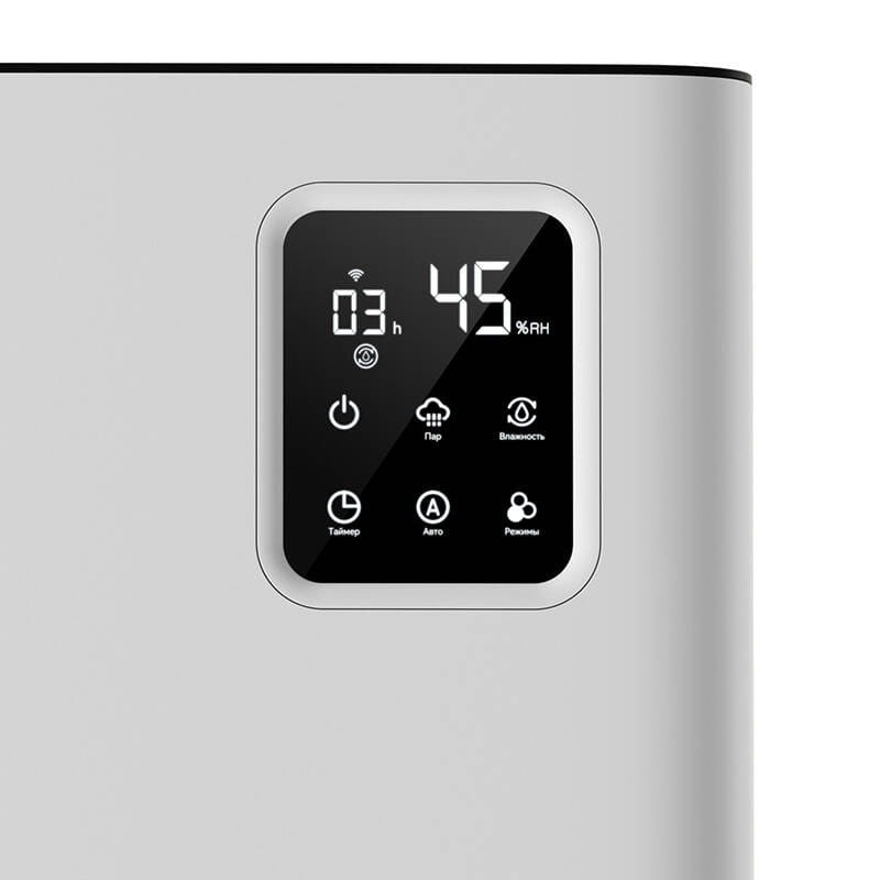Zbiornik na wodę o pojemności 4,8 litra zapewnia długi czas pracy urządzenia bez konieczności częstego uzupełniania wody. Nawilżacz wyposażony jest w inteligentny wyświetlacz cyfrowy, który prezentuje w czasie rzeczywistym aktualne parametry, takie jak temperatura, wilgotność oraz tryb nawilżania. Wbudowane czujniki temperatury i wilgotności umożliwiają dokładne monitorowanie warunków w pomieszczeniu, co pozwala na optymalne dostosowanie pracy urządzenia. Automatyczny pomiar czasu pracy do 12 godzin dodatkowo zwiększa komfort użytkowania, umożliwiając zaprogramowanie urządzenia zgodnie z codziennym harmonogramem.