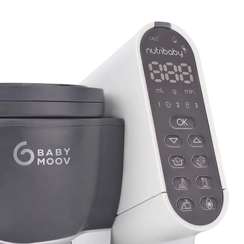 Nutribaby łączy aż 6 funkcji w jednym urządzeniu: gotowanie na parze, blendowanie, sterylizacja butelek i małych akcesoriów, podgrzewanie (słoików z jedzeniem i butelek) oraz rozmrażanie. Dzięki centralnemu panelowi sterowania, obsługa robota jest niezwykle intuicyjna – każdy przycisk odpowiada jednej funkcji, co ułatwia codzienne korzystanie.