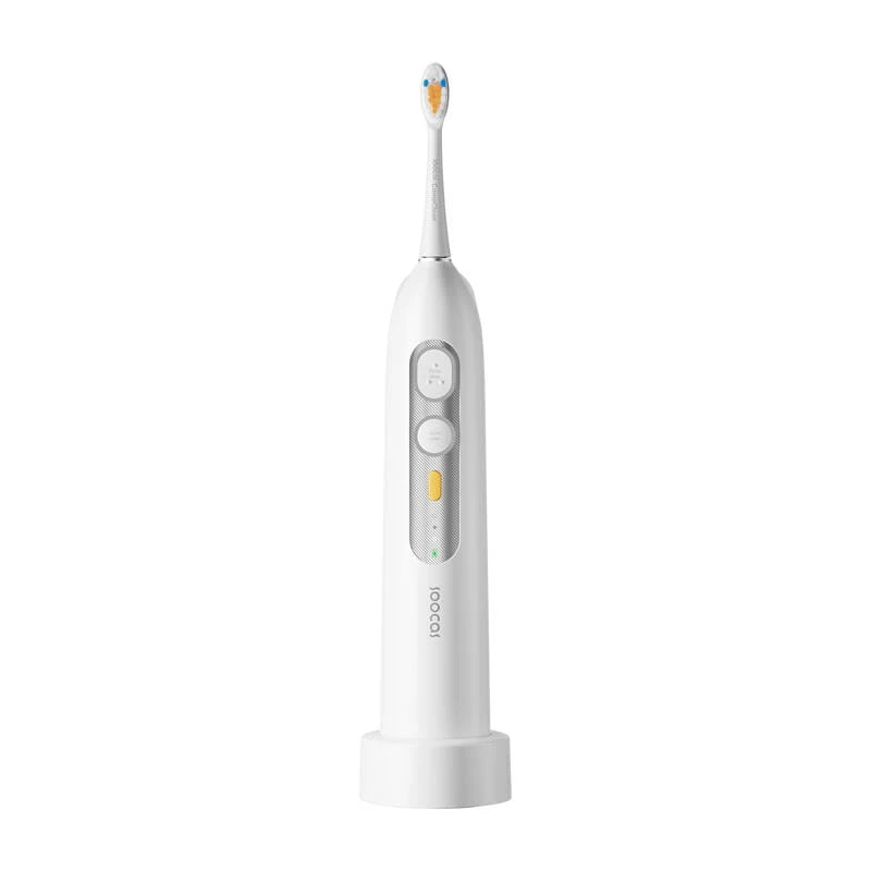 Zadbano o to, aby użytkowanie urządzenia Soocas było dla Ciebie jak najwygodniejsze. Szczoteczka zapamiętuje ostatnio wykorzystywany tryb i ustawia go jako domyślny, a specjalny wskaźnik informuje o aktualnie wybranym trybie. Inteligentne przypomnienia informują o konieczności zmiany szczotkowanego obszaru, pomagając w wykształceniu dobrych nawyków higieny jamy ustnej. Dzięki wodoodporności na poziomie IPX8 możesz swobodnie dbać o higienę jamy ustnej bez obaw o uszkodzenie. Dodatkowo system kontroli ciśnienia wody utrzymuje stałe ciśnienie, zapobiegając uszkodzeniom linii dziąseł. Materiał zastosowany w szczoteczce posiada aprobatę FDA. Wszystko w trosce o Twój komfort!