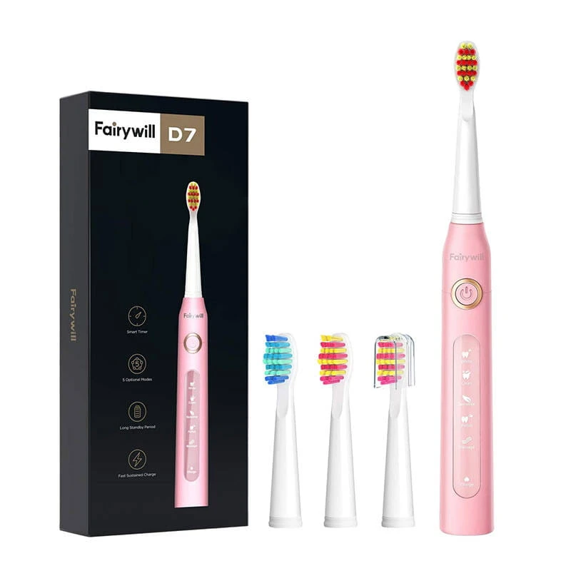 Szczoteczka soniczna do zębów z zestawem końcówek FairyWill 507 (różowa)