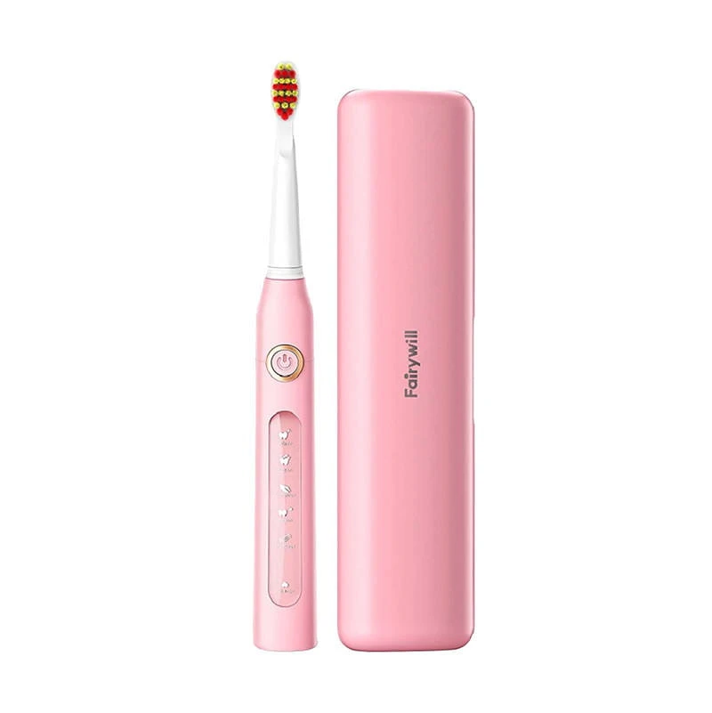 Szczoteczka soniczna do zębów z zestawem końcówek i etui FairyWill FW-507 Plus (różowa)