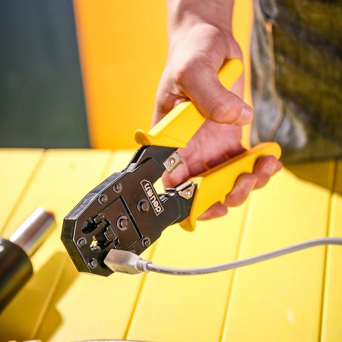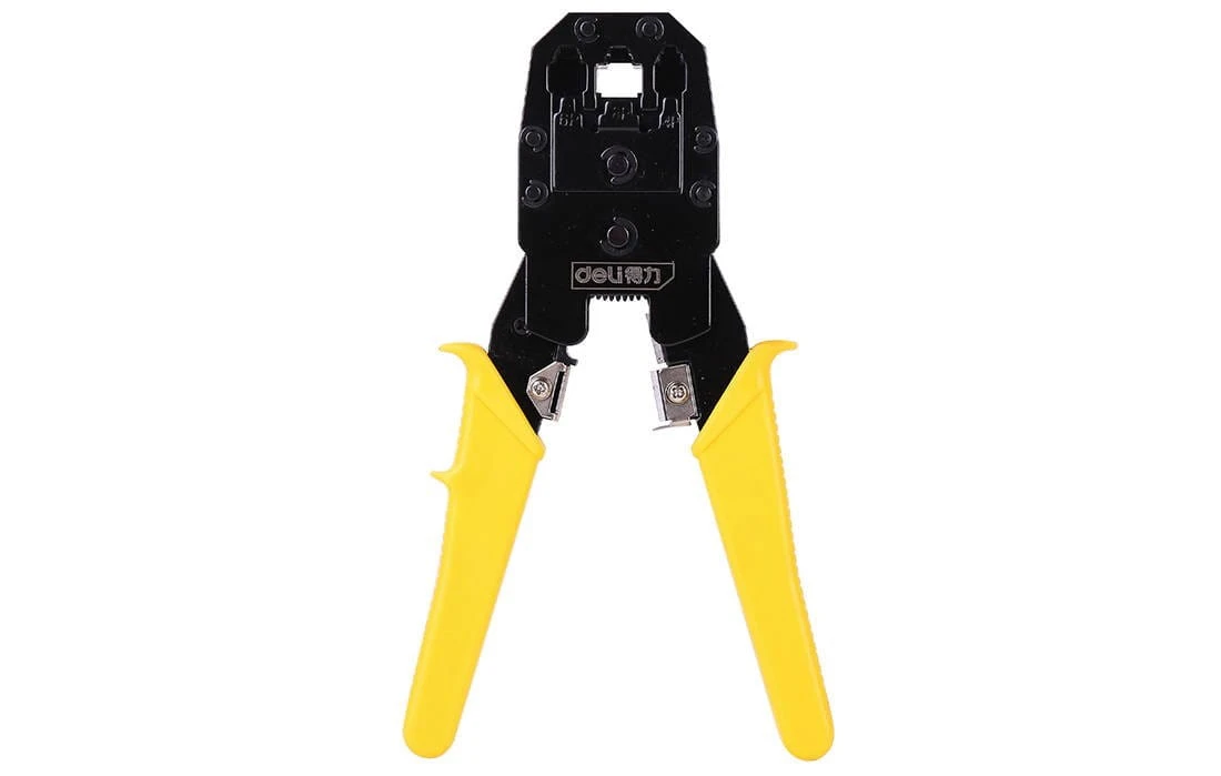 Szczypce do zaciskania konektorów Ethernet Deli Tools EDL2468, 4/6/8P, RJ45/RJ14/RJ12/RJ9 (żółte)