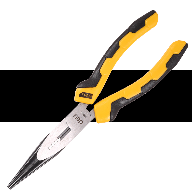 Szczypce wydłużone proste Deli Tools EDL2108, 8" (żółte)