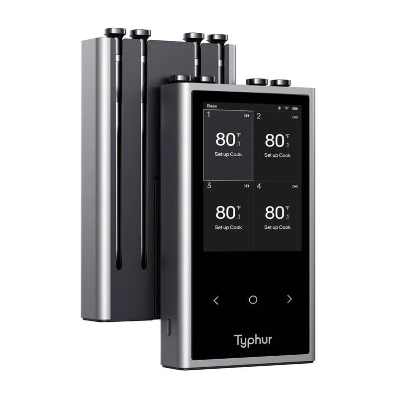 Wyposażony w technologię Bluetooth 5.3, Typhur Sync Quad zapewnia stabilną i szybką transmisję danych nawet na dużych odległościach. W otwartej przestrzeni sygnał może być odbierany z odległości do 400 stóp, a w zamkniętych pomieszczeniach do 135 stóp. Jeśli potrzebujesz jeszcze większej swobody, aplikacja Typhur pozwala na zdalne monitorowanie temperatury z nieograniczonego zasięgu przez Wi-Fi.