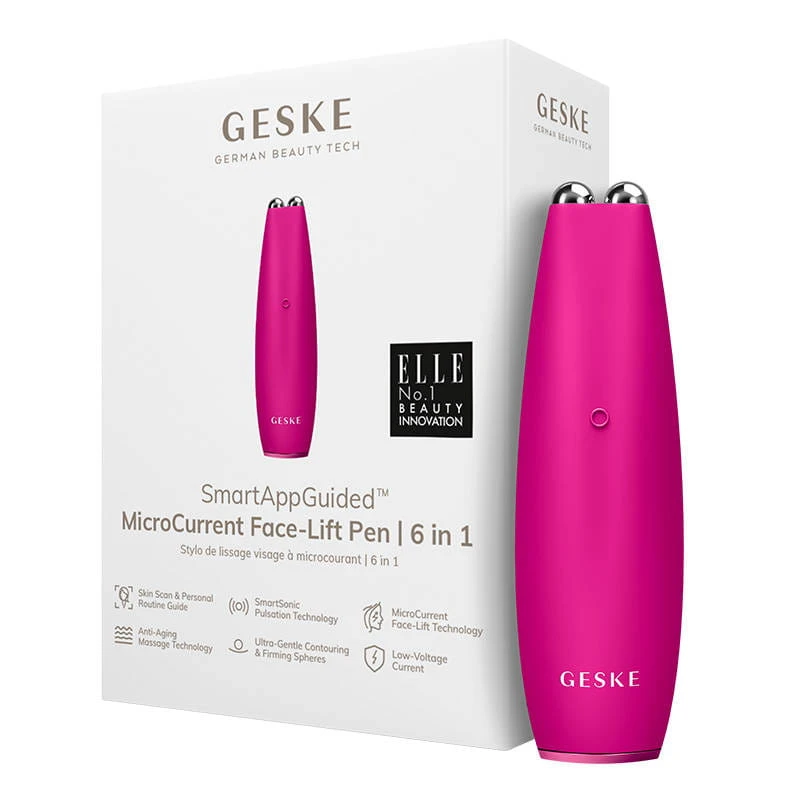 Produkt Geske to praktyczne urządzenie wielofunkcyjne, które pozwoli Ci kompleksowo zadbać o skórę twarzy. Wygładza drobne zmarszczki wokół oczu, ust i na czole. Stymuluje wytwarzanie kolagenu, ujędrnia i tonizuje twarz, pozostawiając ją napiętą. Jednocześnie zapewnia bezpieczeństwo użytkowania dzięki starannie przemyślanej konstrukcji. Z kolei dedykowana aplikacja zapewnia dostęp do wielu przydatnych informacji i pozwala dobrać pielęgnację do potrzeb skóry. Wybierz rozwiązanie, którym zaufali eksperci z ELLE – marka Geske otrzymała od magazynu ELLE tytuł ELLE No.1 Beauty Innovation.