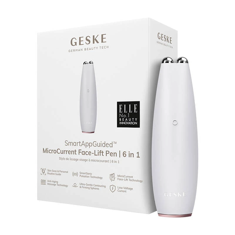 Produkt Geske to praktyczne urządzenie wielofunkcyjne, które pozwoli Ci kompleksowo zadbać o skórę twarzy. Wygładza drobne zmarszczki wokół oczu, ust i na czole. Stymuluje wytwarzanie kolagenu, ujędrnia i tonizuje twarz, pozostawiając ją napiętą. Jednocześnie zapewnia bezpieczeństwo użytkowania dzięki starannie przemyślanej konstrukcji. Z kolei dedykowana aplikacja zapewnia dostęp do wielu przydatnych informacji i pozwala dobrać pielęgnację do potrzeb skóry. Wybierz rozwiązanie, którym zaufali eksperci z ELLE – marka Geske otrzymała od magazynu ELLE tytuł ELLE No.1 Beauty Innovation.
